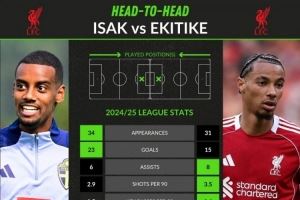 体育资讯9月5日讯 利物浦在今夏先后花费重金签下了埃基蒂克和伊萨克,whoscored也对比了两人在上赛季联赛的关键数据。