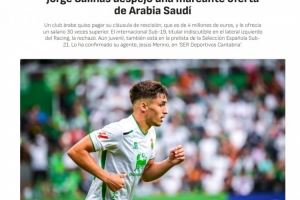 这家沙特俱乐部愿意支付乔治-萨利纳斯400万欧的解约金,并提供比他在桑坦德竞技队现有薪资高出30倍的合同。尽管面对如此丰厚的条件,萨利纳斯还是决定留在桑坦德竞技继续他的职业生涯。