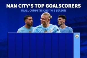 本赛季曼城队内射手榜: