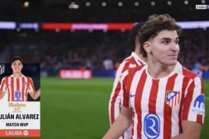 体育资讯11月9日讯 马竞在本轮西甲3-1击败莱万特,西甲官方在赛后将没有直接参与进球的阿尔瓦雷斯评选为本场MVP。